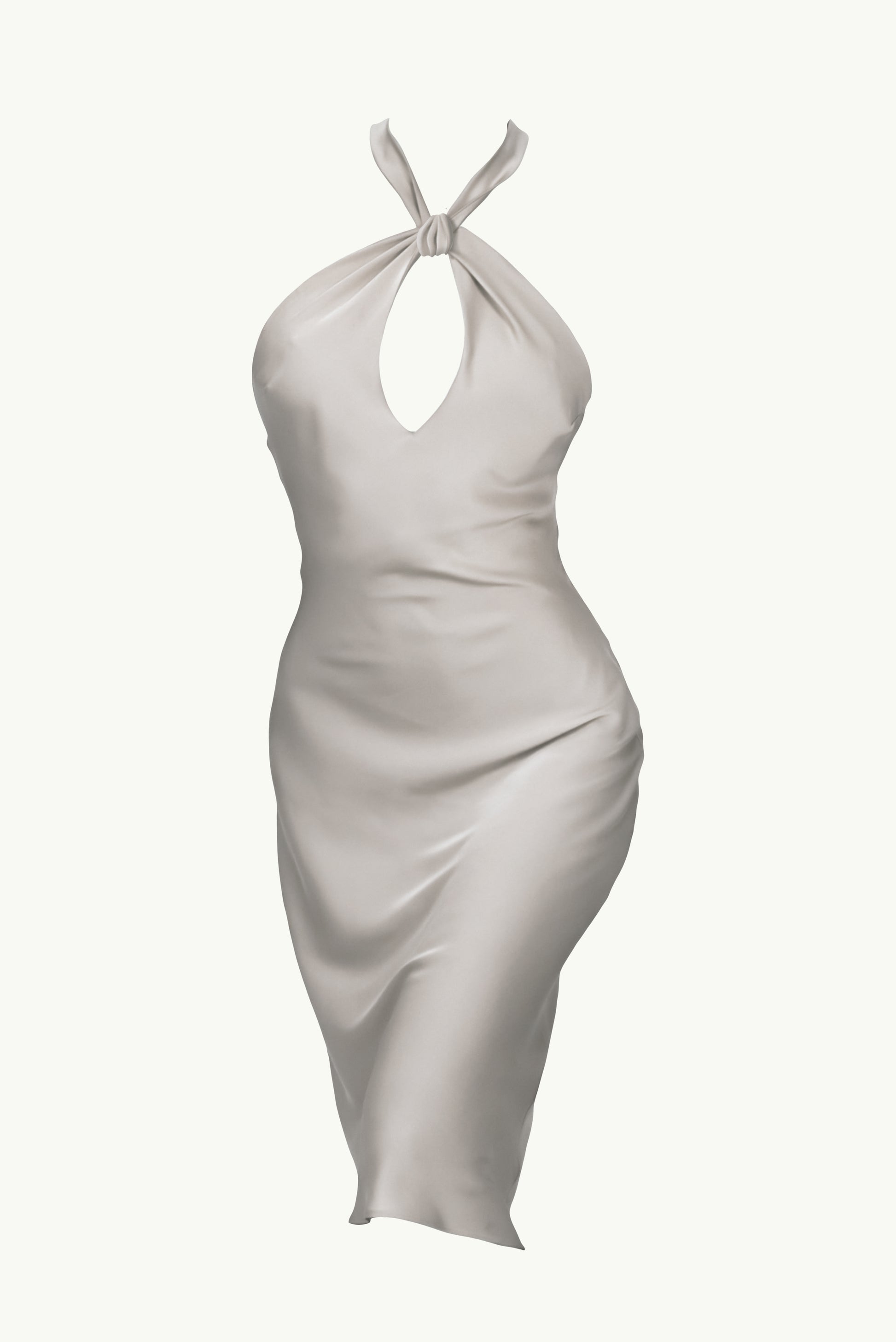 Elegant midi dress made of premium satin with a knot at the neck and crisscross straps on the back.