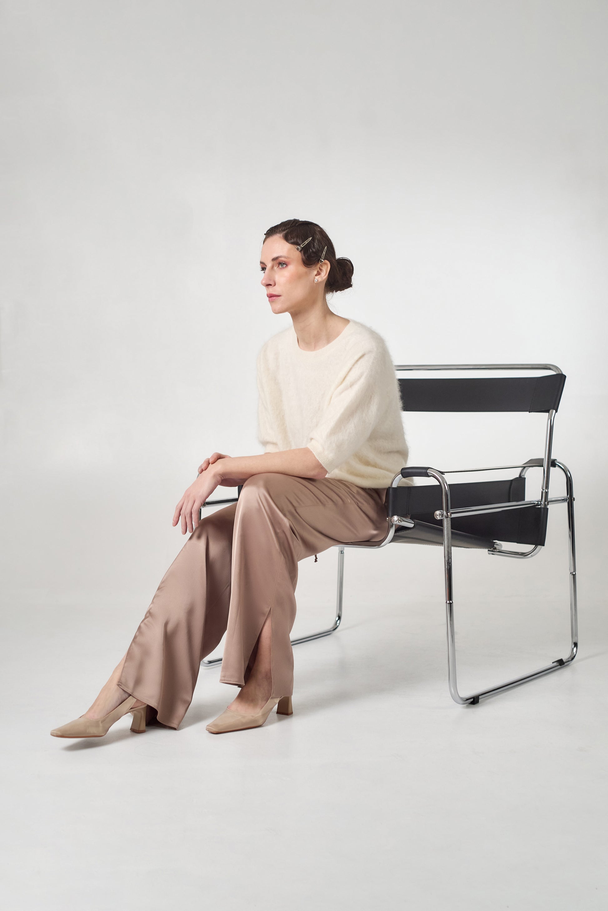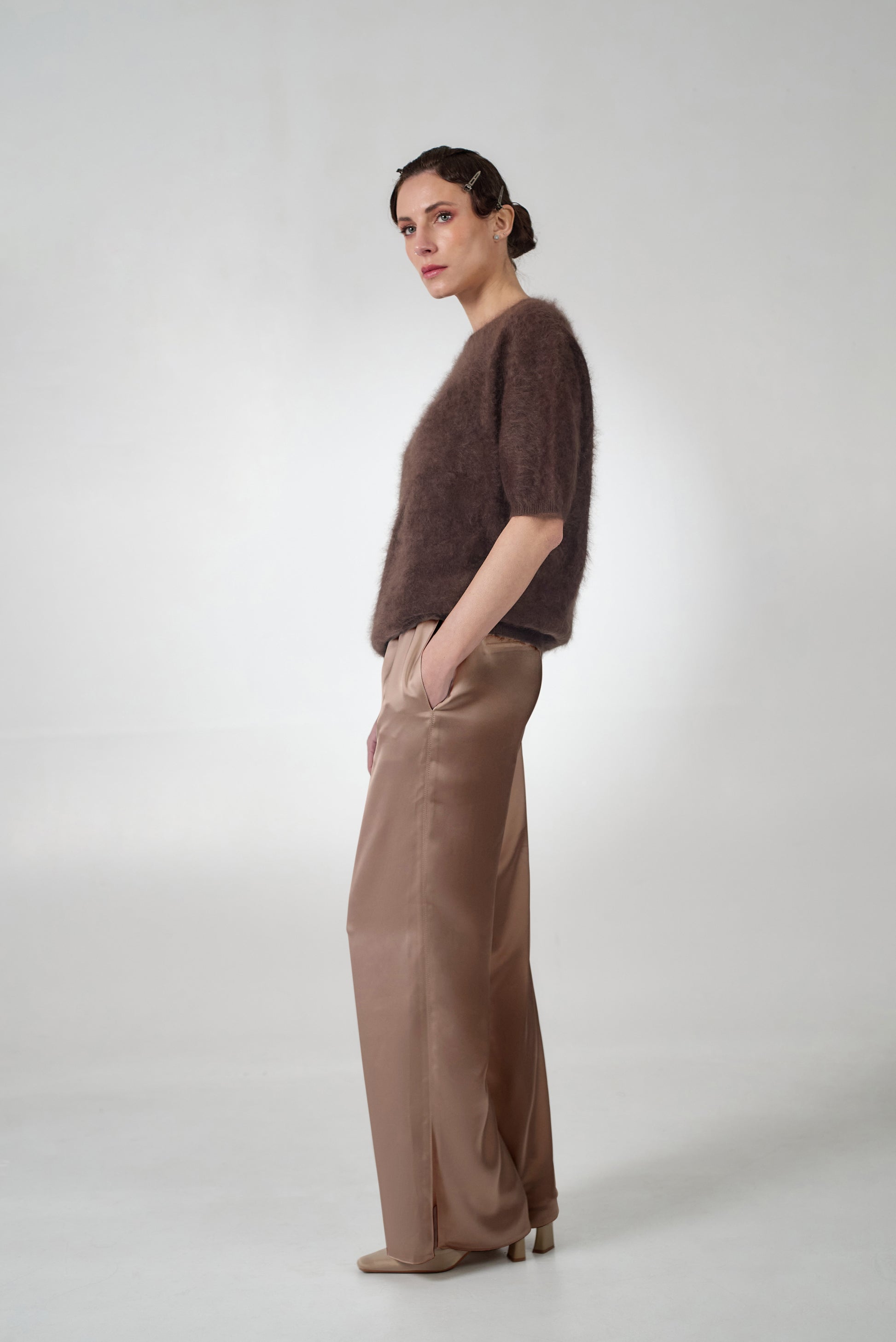 Satin pants in mocha